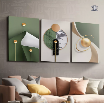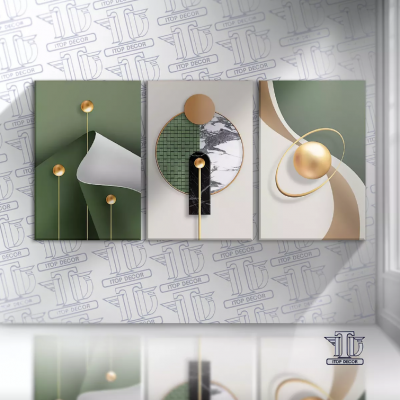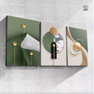 قاب های تزئینی انتزاعی هندسی اتاق سبز طلایی 3 کامپیوتر